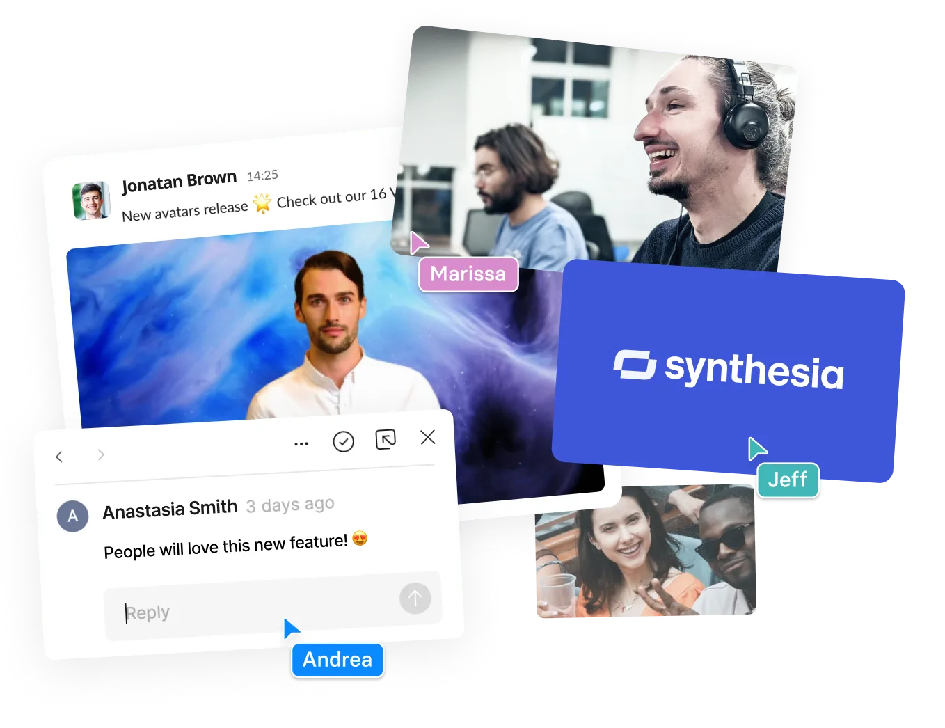 Synthesia was founded in 2017 by a team of AI researchers and entrepreneurs from UCL, Stanford, TUM and Cambridge. Our mission is to empower everyone to make video content - without cameras, microphones, or studios.