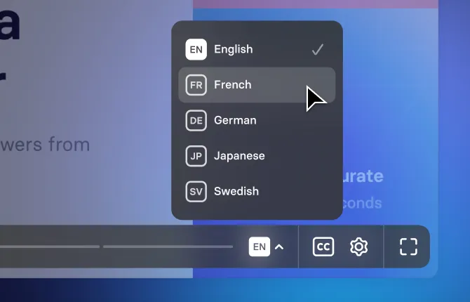 Simply share your video, and our player will automatically play in your viewer's language.
