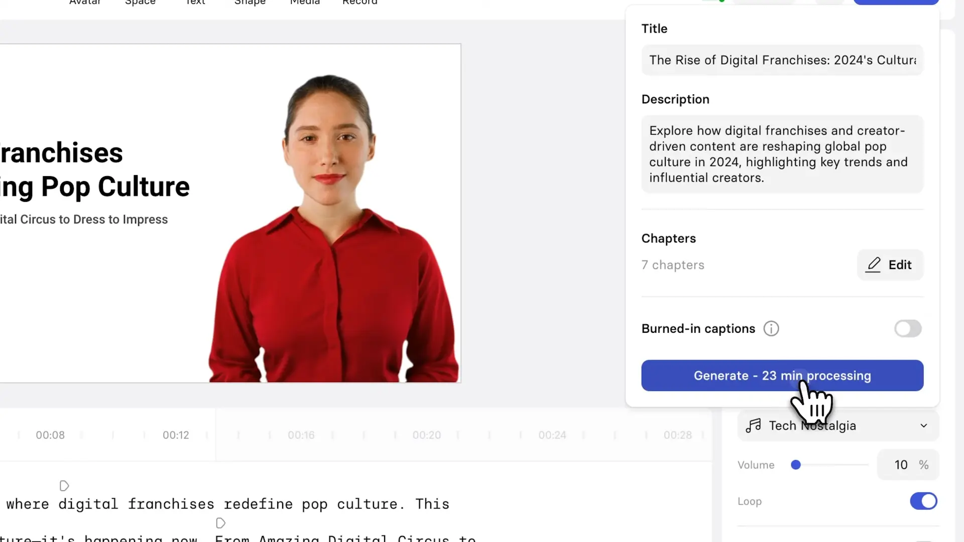 Finally, I hit Generate, and within minutes, my PDF has transformed into an engaging, fully produced video.