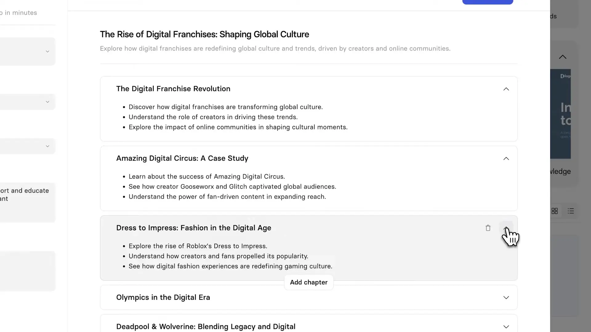 For example, if I don’t want a section on gaming trends, I can remove that chapter entirely. It’s super easy to edit and refine before moving forward.