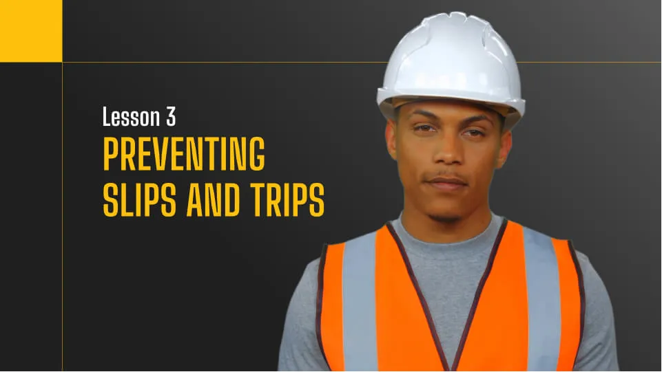 In this construction safety lesson, learn how to prevent slips & trips on job sites. Clean up spills, use proper lighting, wear non-slip footwear for a safer work environment. Follow these guidelines to protect yourself and your team.